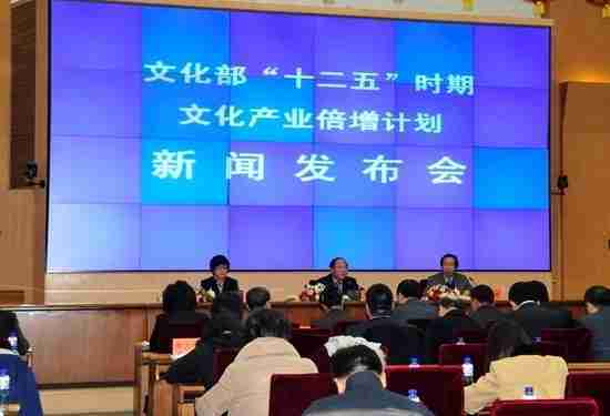 2月28日下午,,,文化部在京召开新闻发布会,,,正式向社会发布《文化部“十二五”时期文化产业倍增计划》,,提出了 “十二五”期间文化部门管理的文化产业增加值年平均现价增长速度高于20%,,,2015年比2010年至少翻一番,,,实现倍增的奋斗目标。。。。